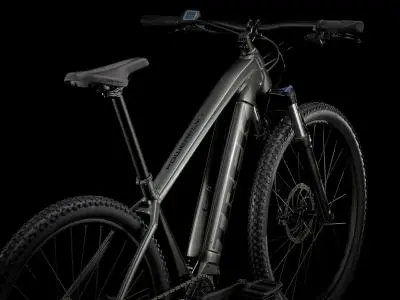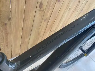 - Le VTT à assistance électrique Powerfly 4 de la marque Trekbikes est doté d’un cadre en aluminium à la fois résistant et raffiné dans lequel est complètement encastrée une batterie de grande autonomie de 500 Wh pour la pureté des lignes, un moteur Bosch Performance CX (250 W, 85 Nm) capable d’offrir une assistance jusqu’à 25 km/h, un dispositif de commande Bosch Purion, une transmission monoplateau 10 vitesses Shimano, une fourche télescopique avec blocage.